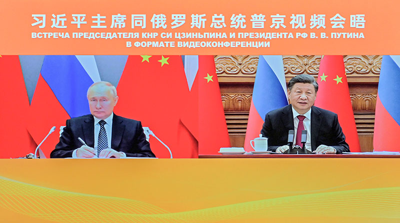 12月30日下午,國家主席習近平在北京同俄羅斯總統普京舉行視頻會晤。新華社記者 申宏 攝