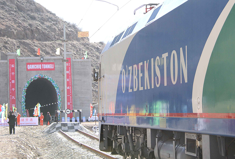 2016年2月27日,一列專列停在烏茲別克斯坦安格連-帕普鐵路卡姆奇克隧道進(jìn)口。中國政府優(yōu)買項目、中鐵隧道集團(tuán)承擔(dān)的中亞最長隧道——烏茲別克斯坦安格連-帕普鐵路卡姆奇克隧道2月27日全隧貫通。新華社記者 沙達(dá)提 攝
