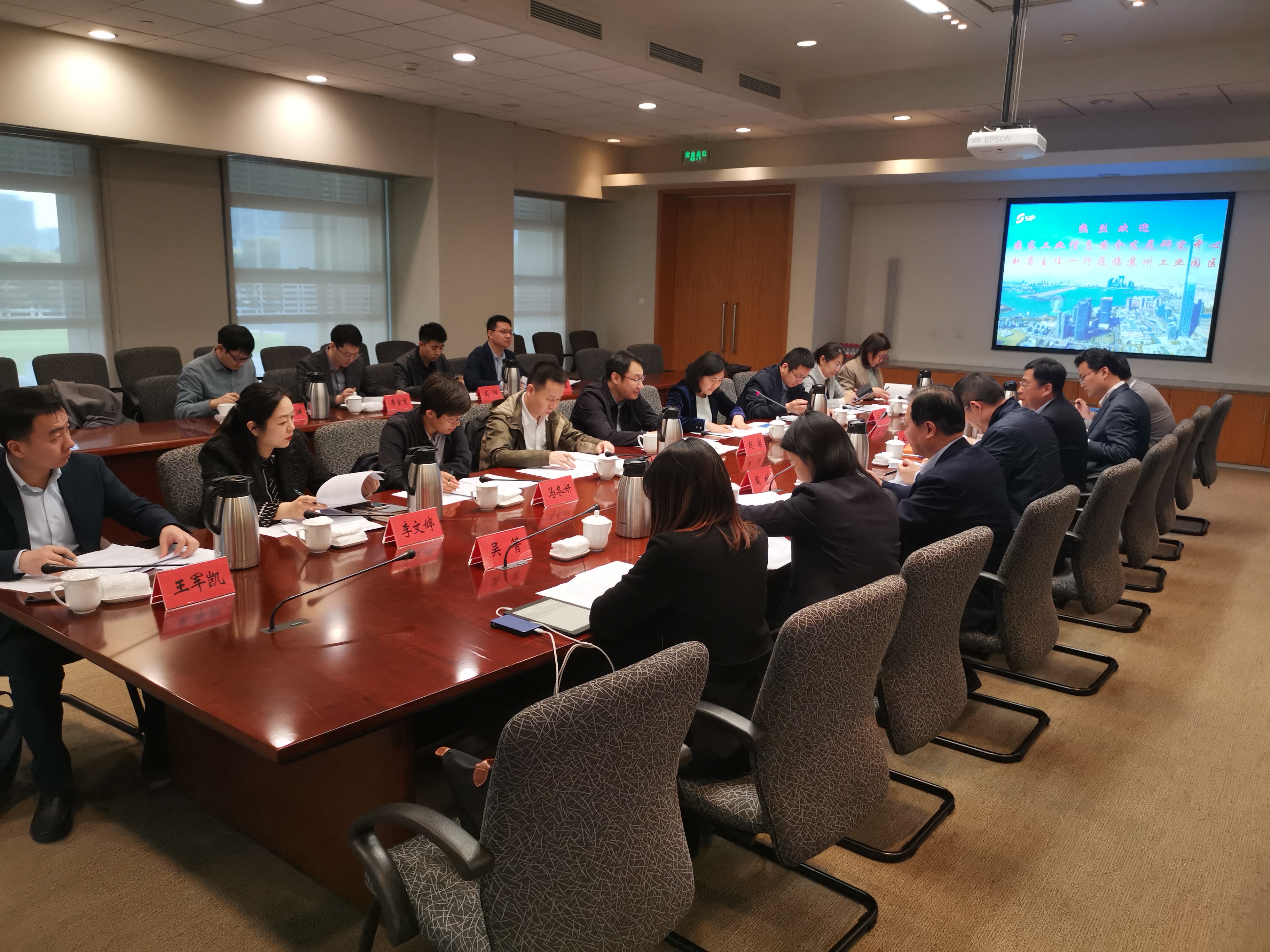 3月25日,中心主任趙巖一行赴蘇州開展調研交流,蘇州市工業和信息化局黨組書記萬利,蘇州市工業園區黨工委委員、管委會副主任倪乾出席調研活動。