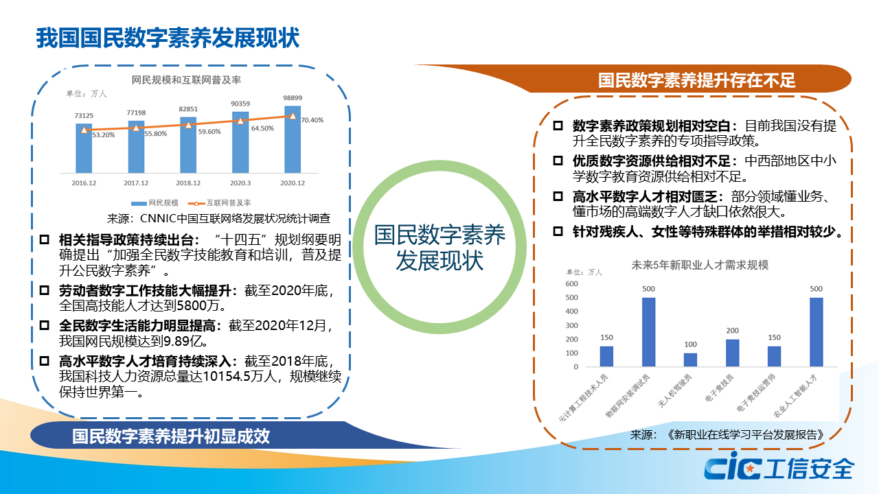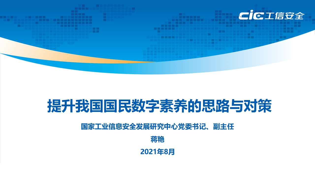 8月20日,2021網(wǎng)上絲綢之路大會(huì)數(shù)字新基建與全民數(shù)字素養(yǎng)提升論壇在寧夏銀川市召開(kāi),國(guó)家工業(yè)信息安全發(fā)展研究中心黨委書記、副主任蔣艷受邀以線上方式參會(huì),并就“提升我國(guó)國(guó)民數(shù)字素養(yǎng)的思路與對(duì)策”發(fā)表主旨演講。