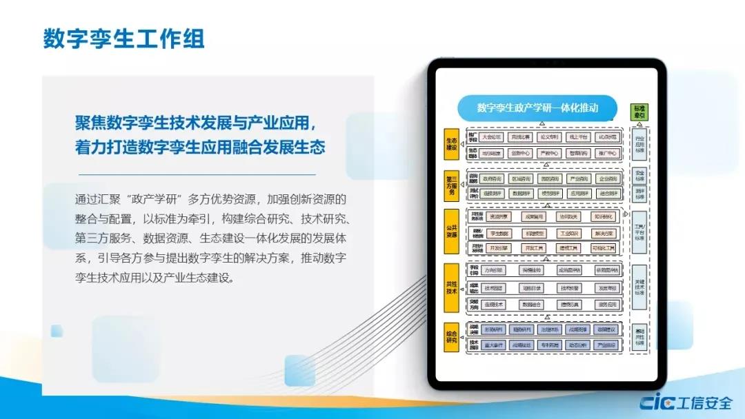 數字孿生工作組主要聚焦數字孿生技術發展與產業應用,著力打造數字孿生應用融合發展生態。通過匯聚“政產學研”多方優勢資源,加強創新資源的整合與配置,以標準為牽引,構建綜合研究、技術研究、第三方服務、數據資源、生態建設一體化發展的發展體系,推動數字孿生技術應用以及產業生態建設。
