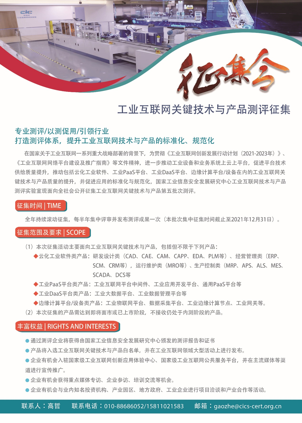 新一輪工業互聯網關鍵技術與產品測評征集活動現已啟動,歡迎各方積極參與!