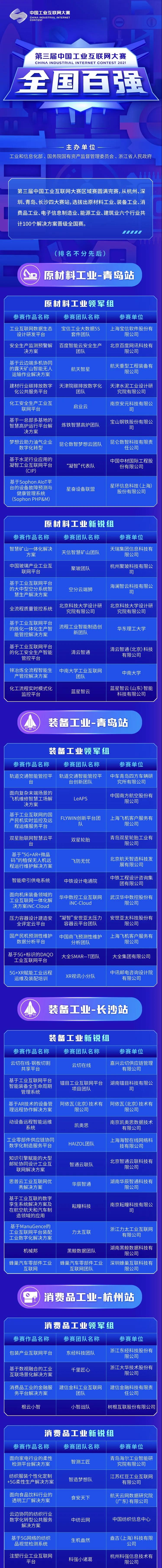 10月27日,第三屆中國(guó)工業(yè)互聯(lián)網(wǎng)大賽的參賽團(tuán)隊(duì)經(jīng)過(guò)激烈角逐,全國(guó)賽百?gòu)?qiáng)團(tuán)隊(duì)從四大區(qū)域賽站決賽中脫穎而出。第三屆中國(guó)工業(yè)互聯(lián)網(wǎng)大賽由工業(yè)和信息化部、國(guó)務(wù)院國(guó)有資產(chǎn)監(jiān)督管理委員會(huì)、浙江省人民政府主辦,國(guó)家工業(yè)信息安全發(fā)展研究中心、浙江省經(jīng)濟(jì)和信息化廳、杭州市人民政府、國(guó)開(kāi)投資基金管理有限責(zé)任公司承辦。自7月29日正式啟動(dòng)和開(kāi)通官網(wǎng)報(bào)名通道以來(lái),在全國(guó)范圍內(nèi)共征集優(yōu)秀的工業(yè)互聯(lián)網(wǎng)創(chuàng)新解決方案1942個(gè),創(chuàng)歷屆新高。通過(guò)線上初賽評(píng)審和線下決賽的激烈比拼,經(jīng)由各大賽站專(zhuān)家評(píng)委專(zhuān)業(yè)細(xì)致的評(píng)審,最終四大賽站分別評(píng)選出賽站一、二、三等獎(jiǎng),并遴選出共計(jì)100個(gè)優(yōu)秀解決方案晉級(jí)全國(guó)賽。