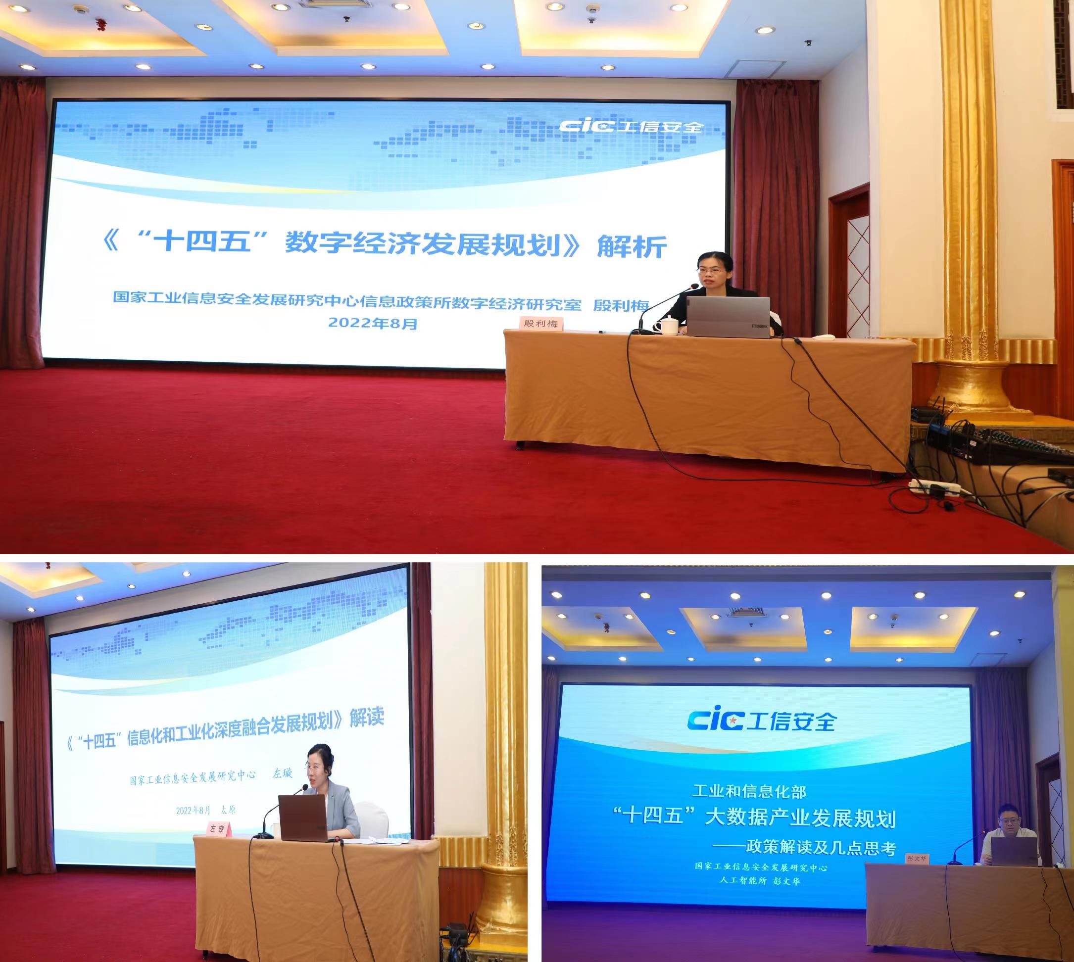 國家工業信息安全發展研究中心數字經濟研究室主任殷利梅、交流合作處工程師左璇、人工智能所大數據事業部副主任彭文華分別圍繞《“十四五”數字經濟發展規劃》《“十四五”信息化和工業化深度融合發展規劃》《“十四五”大數據產業發展規劃》進行政策解讀。