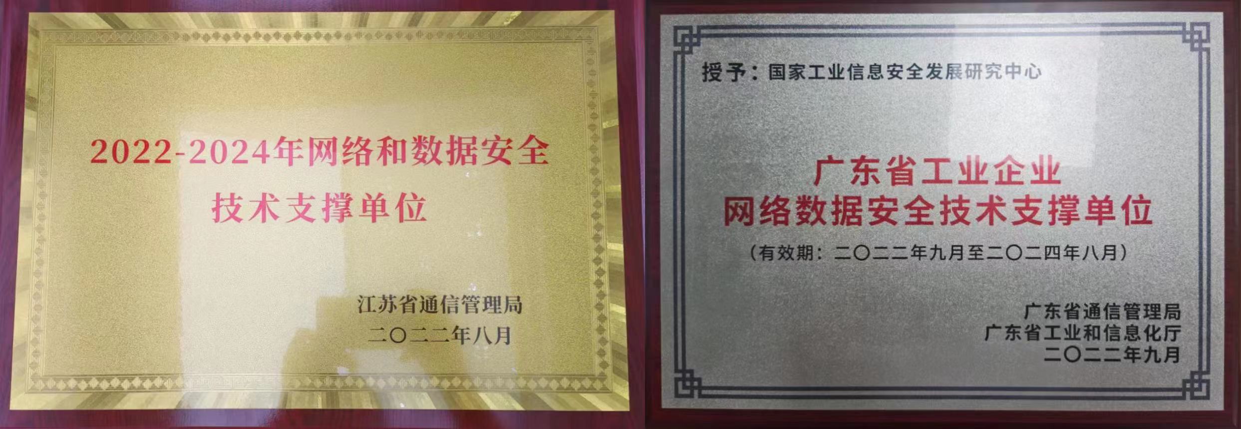 2022年9月,廣東省通信管理局與廣東省工業(yè)和信息化廳聯(lián)合發(fā)布《關(guān)于公布2022年第一批面向廣東省工業(yè)企業(yè)的網(wǎng)絡數(shù)據(jù)安全技術(shù)支撐單位遴選結(jié)果的公告》,經(jīng)材料申報審核、量化評分和能力評審,中心成功獲得“廣東省工業(yè)企業(yè)網(wǎng)絡數(shù)據(jù)安全技術(shù)支撐單位(2022-2024年)”資質(zhì)。中心將立足于工作職責定位,積極配合和支撐廣東省通信管理局、廣東省工業(yè)和信息化廳,深入推進網(wǎng)絡安全和數(shù)據(jù)安全管理支撐,做好相關(guān)安全風險發(fā)現(xiàn)、分析、研判、處置等技術(shù)支持,助力提升全省工業(yè)企業(yè)網(wǎng)絡安全、數(shù)據(jù)安全及工控安全等的防護水平和應急處置能力。