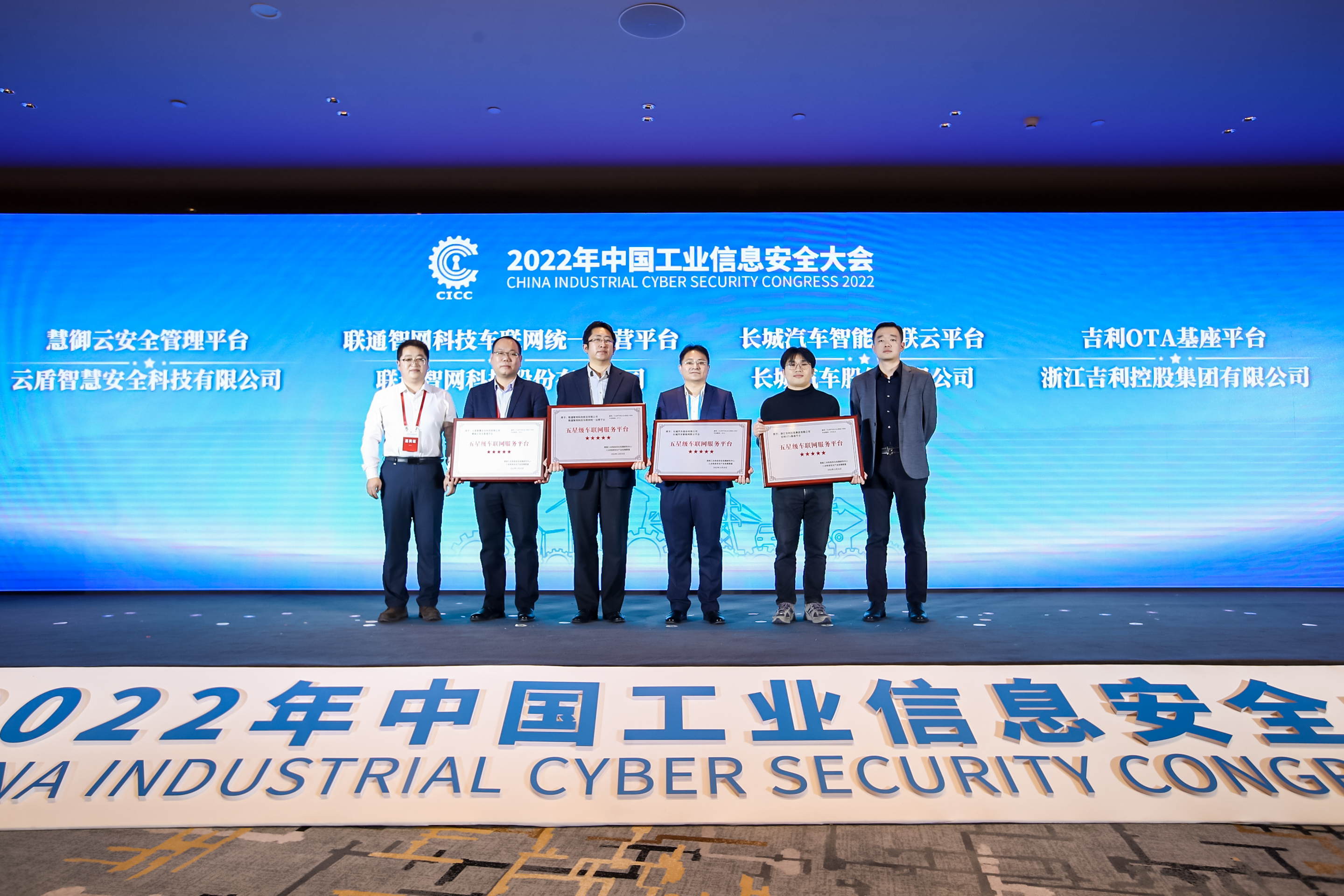 2022年,由國家工業信息安全發展研究中心(以下簡稱中心)牽頭的車聯網安全聯合實驗室與工業信息安全產業發展聯盟車聯網安全專委會,共同發起首批車聯網服務平臺安全能力測試評價活動,共遴選吉利OTA基座平臺、長城汽車智能網聯云平臺、云盾慧御云安全管理平臺、聯通智網科技車聯網統一運營平臺等4家“五星級平臺”,并在中國工業信息安全大會上進行現場授牌。