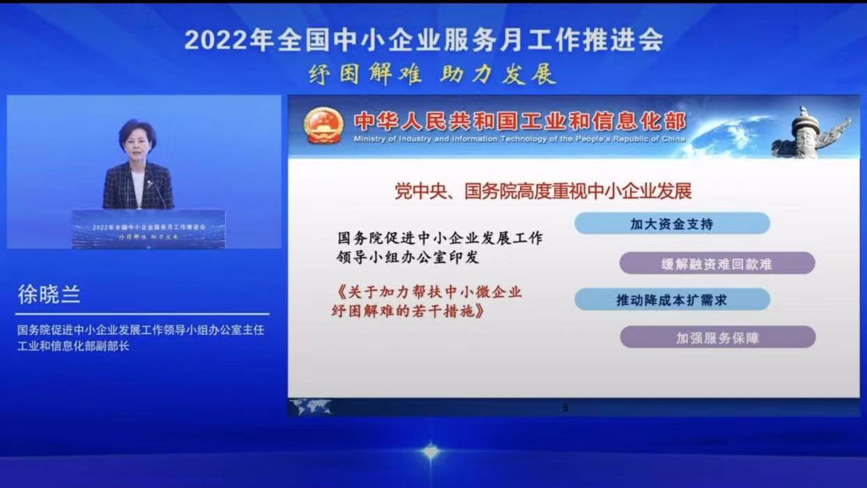 為深入貫徹落實黨中央、國務院關于支持中小企業紓困解難健康發展的決策部署,5月10日,“2022年全國中小企業服務月”工作推進會在京召開,國務院促進中小企業發展工作領導小組辦公室主任、工業和信息化部副部長徐曉蘭出席工作會并講話。國務院促進中小企業發展工作領導小組辦公室副主任、工業和信息化部中小企業局局長梁志峰主持會議。