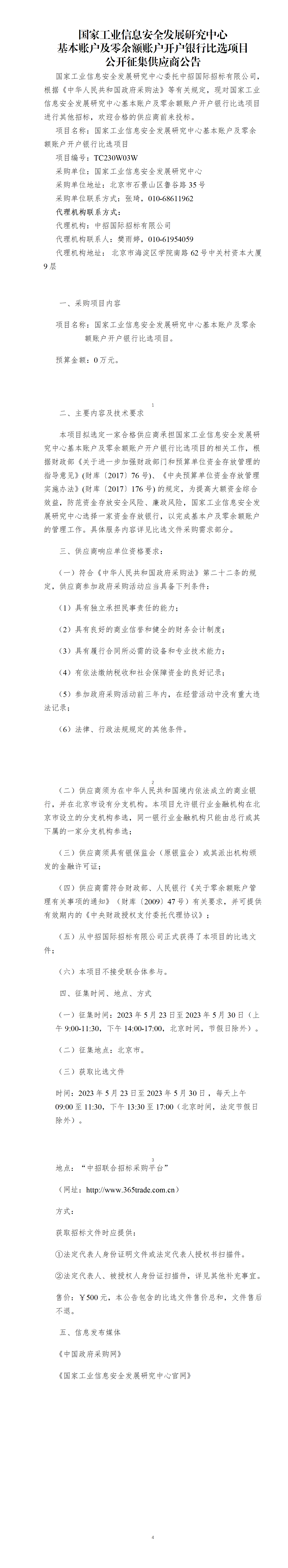 國家工業(yè)信息安全發(fā)展研究中心開戶銀行競爭性選擇公告