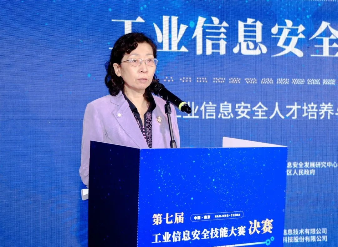 比賽當日,工業和信息化部網絡安全管理局網絡安全處處長袁春陽,國家工業信息安全發展研究中心主任、黨委副書記蔣艷及總工程師黃鵬,工業和信息化部教育與考試中心黨總支書記、主任郝志強,中國互聯網絡信息中心黨委委員、副主任李強,江蘇省工業和信息化廳黨組成員、副廳長池宇,江蘇省通信管理局黨組成員、副局長張瑞英,南京市鼓樓區委常委、區政府副區長郁健、南京市鼓樓高新區黨工委書記翁再寧等相關領導蒞臨大賽現場對比賽進行全方位指導。工業和信息化部網絡安全管理局網絡安全處處長袁春陽在致辭中表示大賽不斷強化理念創新、技術創新、成果創新,已成為我國工業信息安全領域具有廣泛影響力的重要賽事,獲得社會各界廣泛關注和積極參與。希望大賽立足護航新型工業化高質量發展過程中的實際安全需求,切實在增強安全供給服務能力、提升風險防范應對水平、積累工業信息安全“人才庫”等方面發揮本領,推進工業領域網絡安全保障體系和能力建設,以新安全格局保障新發展格局。中心主任蔣艷表示大賽自2017年創辦以來,大賽持續將工作重點聚焦于貫徹落實網絡安全系列文件精神、支撐網絡安全相關重點工作、創新引領關鍵技術研發、加強網絡安全人才隊伍建設、打造高質量技術交流平臺等方面,總決賽圍繞“護航新型工業化網絡安全”設置了賽事場景與賽項,希望通過賽事平臺,進一步貫徹落實中央經濟工作會議、全國新型工業化推進大會的相關要求,探索綠色化生產、數字化運營以及智能化運維等方向的安全解決方案,推動完善新型工業化網絡安全防護能力建設,助力新型工業化發展、制造強國和網絡強國建設。