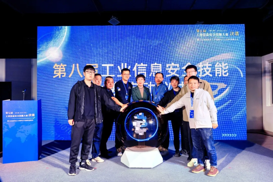 工業和信息化部教育與考試中心黨總支書記、主任郝志強,國家工業信息安全發展研究中心總工程師黃鵬及大賽專家裁判組為各獲獎隊伍頒獎。在頒獎儀式上,由國家工業信息安全發展研究中心總工程師黃鵬與前十強優勝隊伍代表攜手正式啟動第八屆工業信息安全技能大賽。