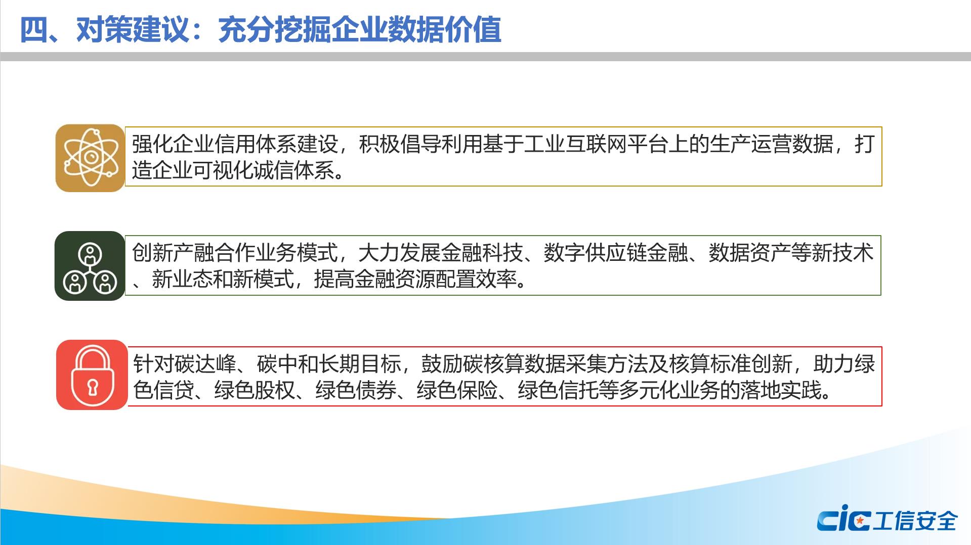 報告強調,當前我國工業互聯網產融合作也面臨著企業服務價值變現壓力提升、中小企業升級改造難度較大、區域產融合作發展差距明顯等問題應引起重視。未來應進一步強化企業信用體系建設,創新產融合作業務模式。以政府引導基金等為紐帶,帶動各路資本投早投小。同時,還應加快搭建數字化轉型公共服務體系,完善中小企業幫扶機制。此外,可通過組織開展投融資對接活動、產融合作專業賽事等方式,強化區域協同宏觀引導,打造產業與金融良性互動、共生共榮的發展局面。
