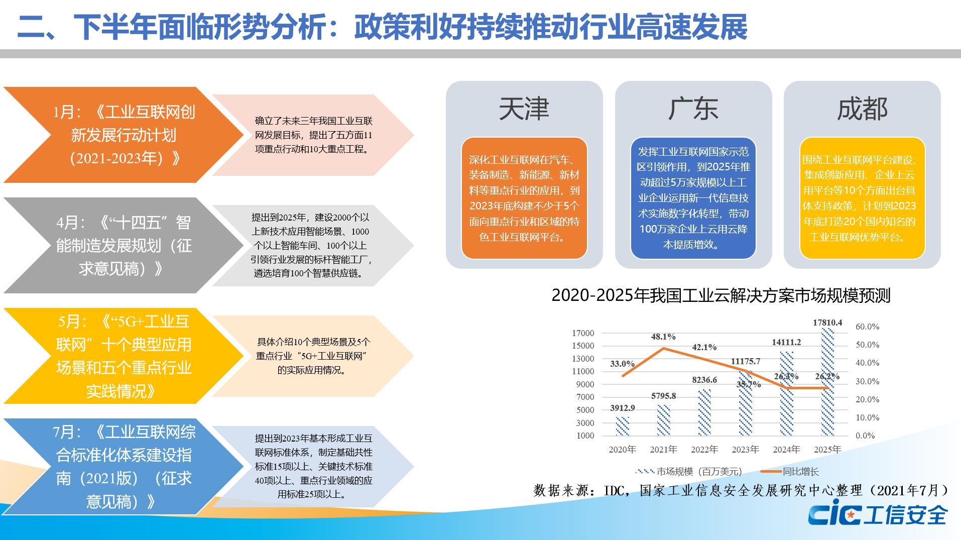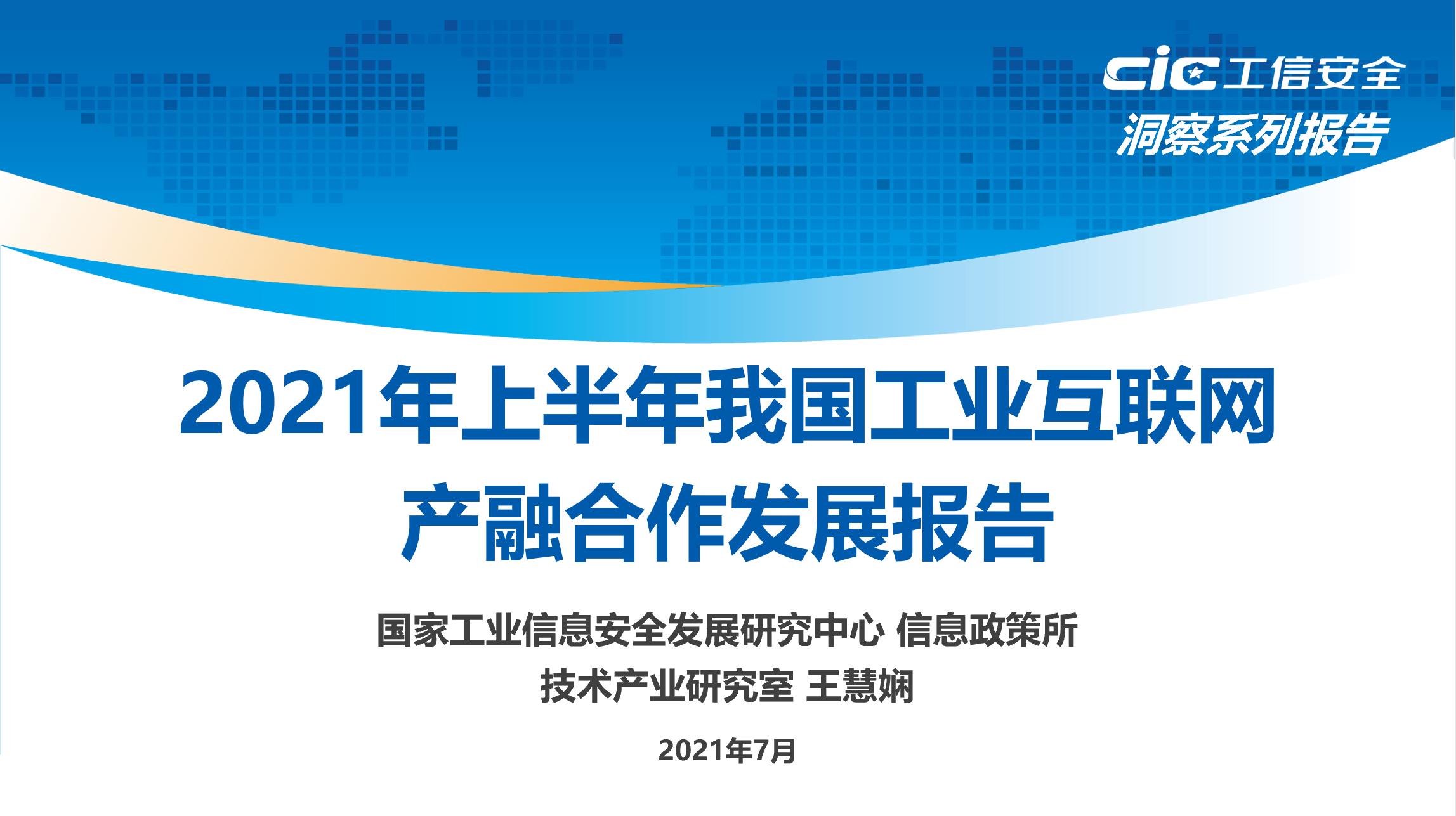 7月28日上午,國家工業信息安全發展研究中心信息政策所主辦的第15場“工信安全智庫”線上發布活動成功舉辦。信息政策所技術產業研究室工程師王慧嫻分享了《2021年上半年我國工業互聯網產融合作發展報告》。