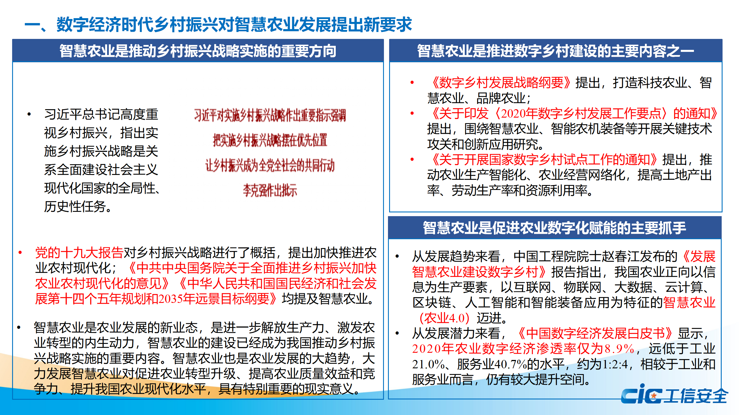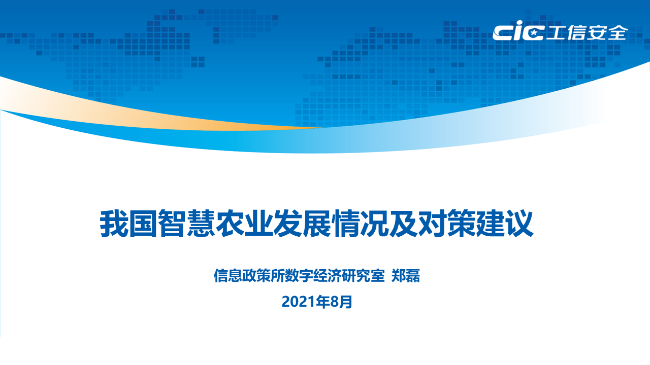 8月20日,第十六場“工信安全智庫”系列報告在線發布活動——“數字經濟專題”成功舉辦。信息政策所數字經濟研究室副主任鄭磊發布了《我國智慧農業發展情況及對策建議》洞察報告。
