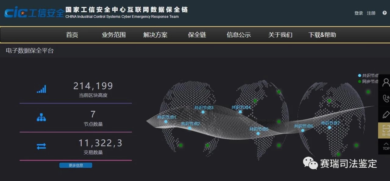 國家工業信息安全發展研究中心結合多年來在電子信息、通信、互聯網等領域的技術優勢及先進經驗,吸收海量互聯網糾紛與犯罪案例研究成果,借鑒國際電子數據取證技術,利用區塊鏈、云計算技術構建了一個國內支持全證據鏈、多場景的電子數據保全平臺——“互聯網數據保全鏈”(網址:www.cic-chain.com)。通過該平臺,可以即時固化、實時上傳互聯網服務中的關鍵數據,生成唯一數字指紋,并通過數字數據公允區塊鏈實現原始性驗證和行為追溯,具有在線一站式、多場景、去中心化的特點,服務按需使用、快速對接,與主流技術平臺無縫兼容。結合我中心電子數據司法鑒定實務,可有效解決互聯網電子數據取證、驗證難題,為用戶解除后顧之憂,為司法和行政管理提供真實完整的證據 。