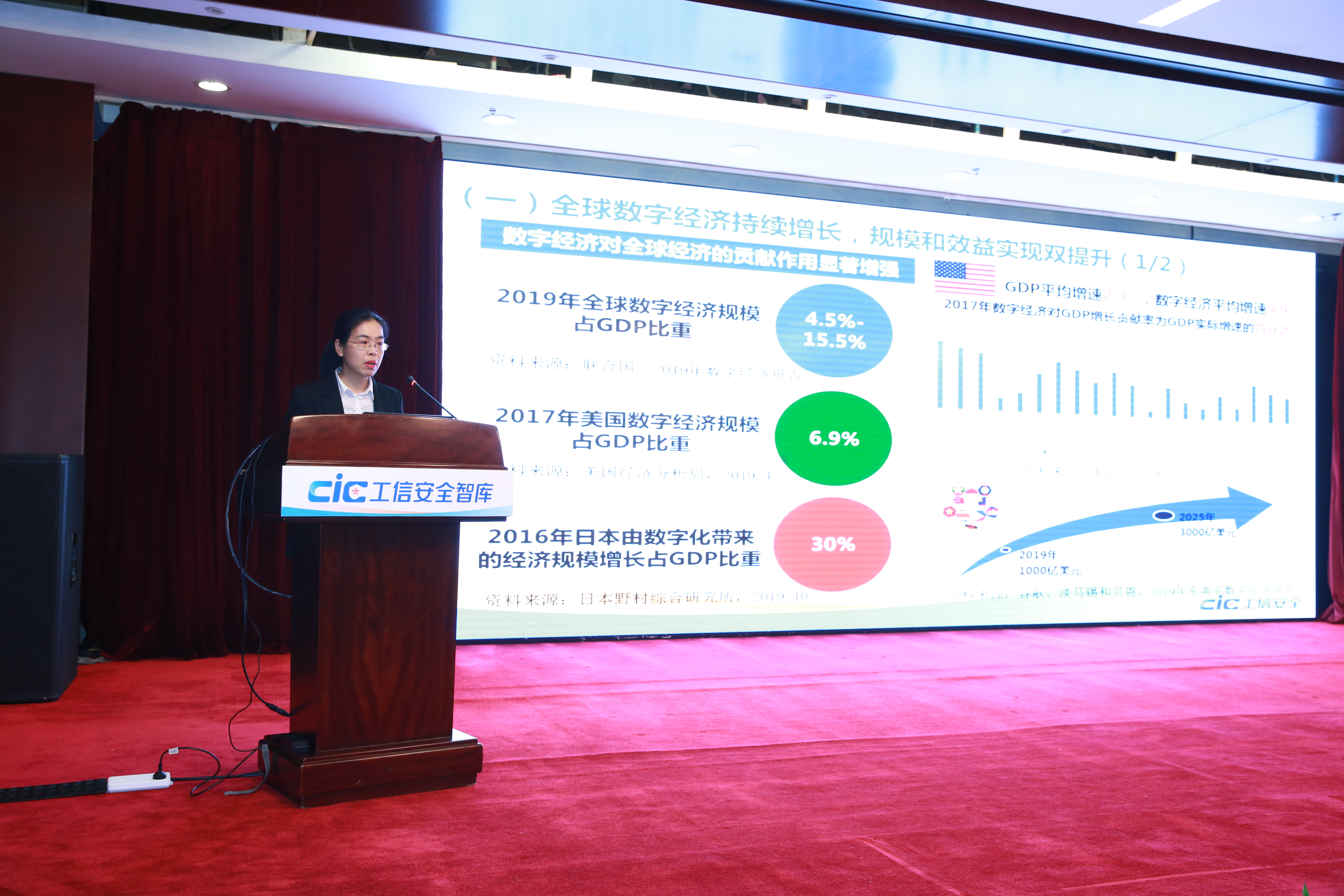 2020年1月10日,首屆“工信安全智庫論壇”在京召開。在成果發布環節,國家工業信息安全發展研究中心信息政策所數字經濟研究室主任殷利梅發布《2019-2020年度數字經濟形勢分析》報告。