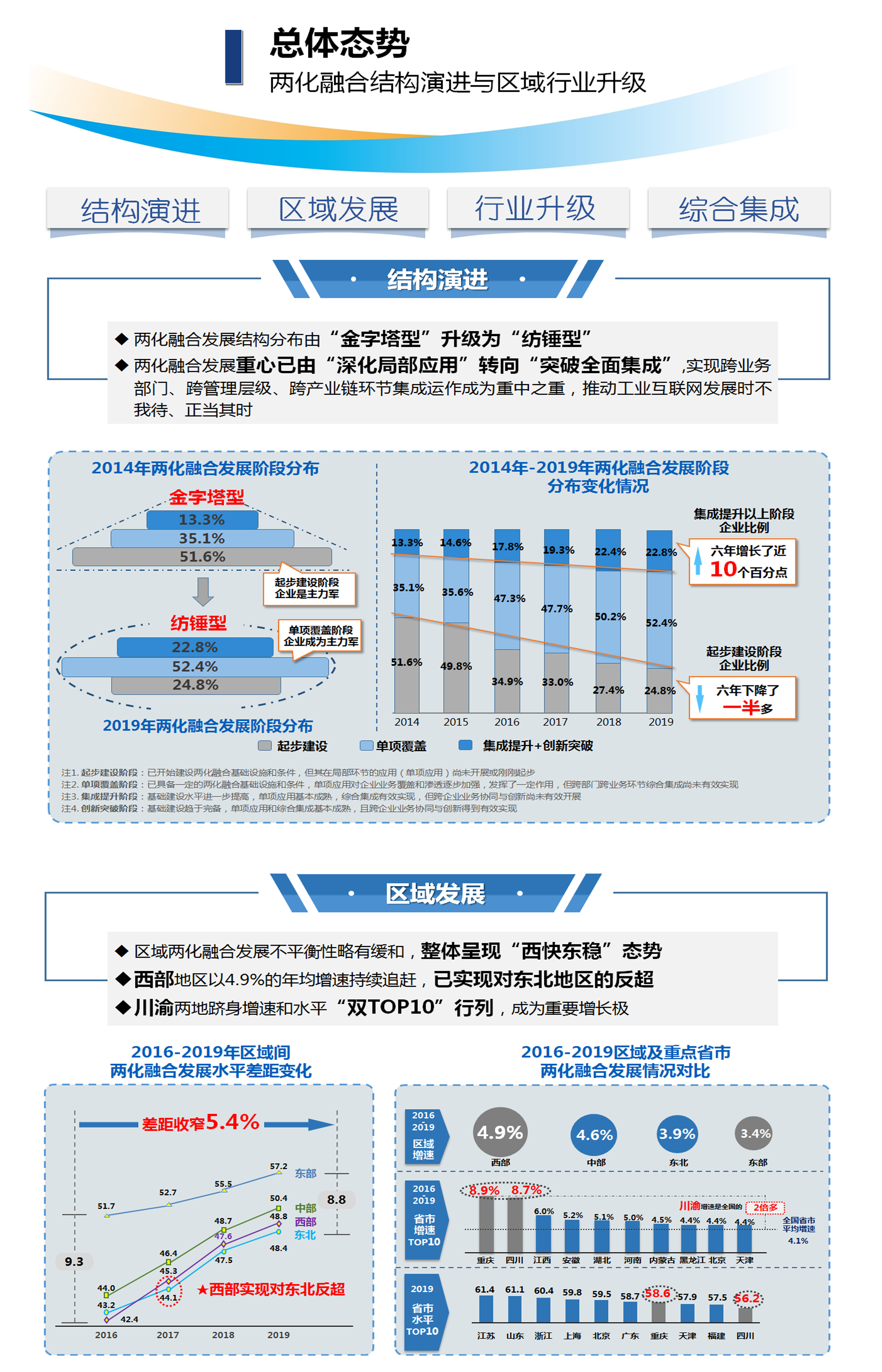 1. 總體態勢:過去十年,我國兩化融合發展進程取得了哪些實質性突破?發展結構發生哪些重大變化?區域兩化融合發展態勢如何?重點行業兩化融合呈現哪些特征?