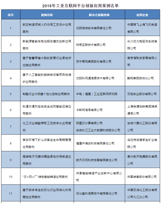 《關(guān)于公布2019年工業(yè)互聯(lián)網(wǎng)平臺創(chuàng)新應(yīng)用案例名單的通知》