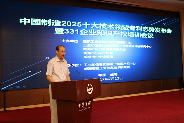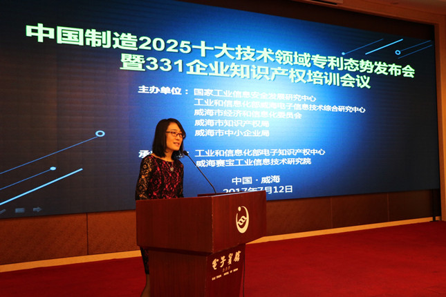 2017年7月12日,由國家工業(yè)信息安全發(fā)展研究中心(工信部電子第一研究所)聯(lián)合工信部威海電子信息技術(shù)綜合研究中心、威海市經(jīng)濟(jì)和信息化委員會、威海市知識產(chǎn)權(quán)局、威海市中小企業(yè)局主辦,工業(yè)和信息化部電子知識產(chǎn)權(quán)中心、威海賽寶工業(yè)信息技術(shù)研究院承辦的“中國制造2025十大技術(shù)領(lǐng)域?qū)@麘B(tài)勢發(fā)布會暨331企業(yè)知識產(chǎn)權(quán)培訓(xùn)”在山東威海成功舉辦。