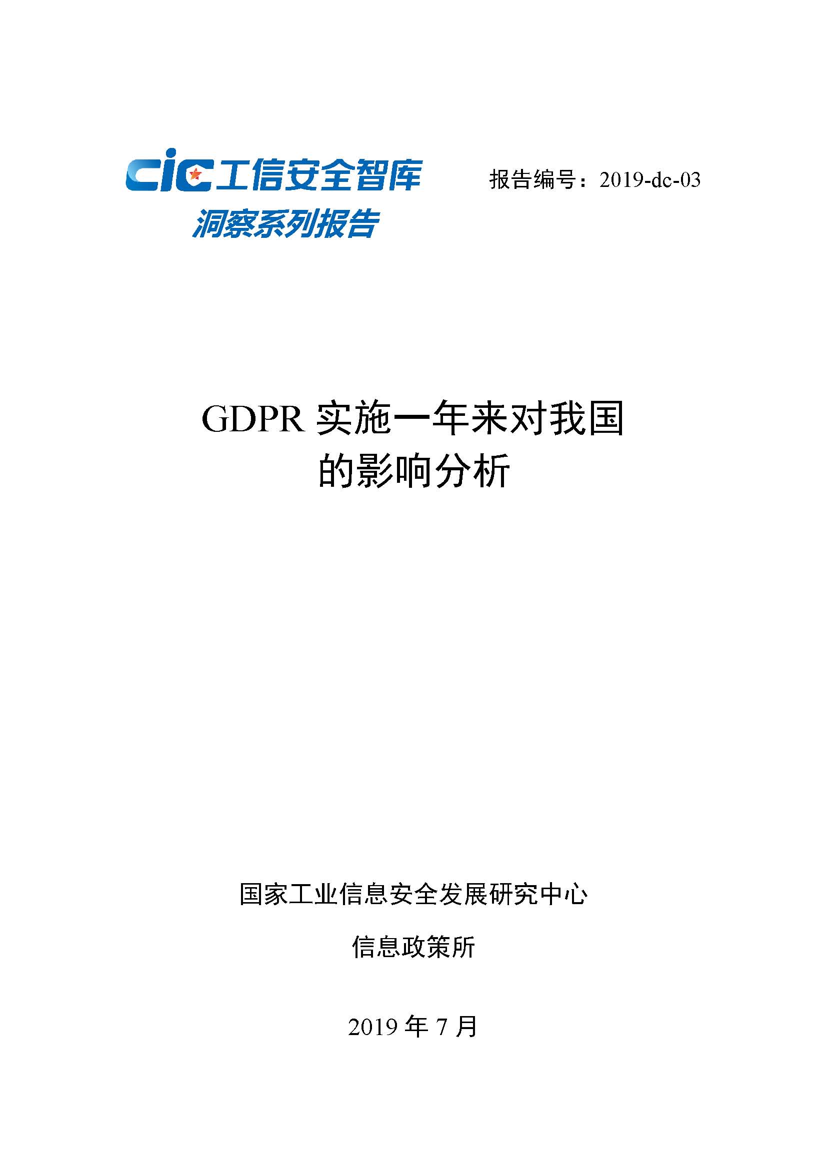 工信安全智庫︱洞察系列報告:《GDPR實施一年來對我國的影響分析》