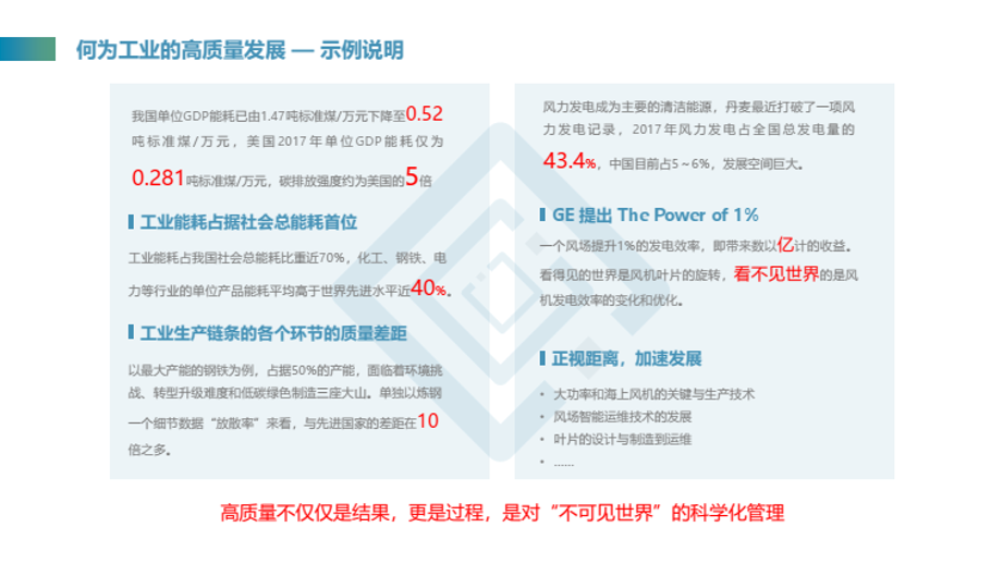 高質量不僅僅是結果,更是對過程、對不可見世界的科學化管理。30年前美國通過互聯網這一“新基建”抓住了發展的最高浪潮,成長出一批互聯網企業巨頭。今天的中國站在這一關鍵的破局時刻,要通過工業新基建加速工業高質量發展,對數字空間的科學化管理是實現工業高質量發展的核心問題。
