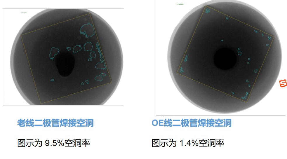 三是OE生產線成效。新建自動化OE生產線,實現關鍵工序的可視化管理,集實時監控、信息采集分析和報警于一身,提高生產效率,降低生產成本。未進行OE生產線建設前,雅光電子焊接空洞在15%左右,焊接爐內氮氫混合氣體比例無法監控,現可自動監控6溫區焊接溫度及氮氫氣體比例,并實時數據采集、分析、報警,焊接空洞≤5%(實測在2%左右),達到國際先進水平,在提高焊接質量的同時,極大提升焊接一致性,得到全球高端主機客戶認可。