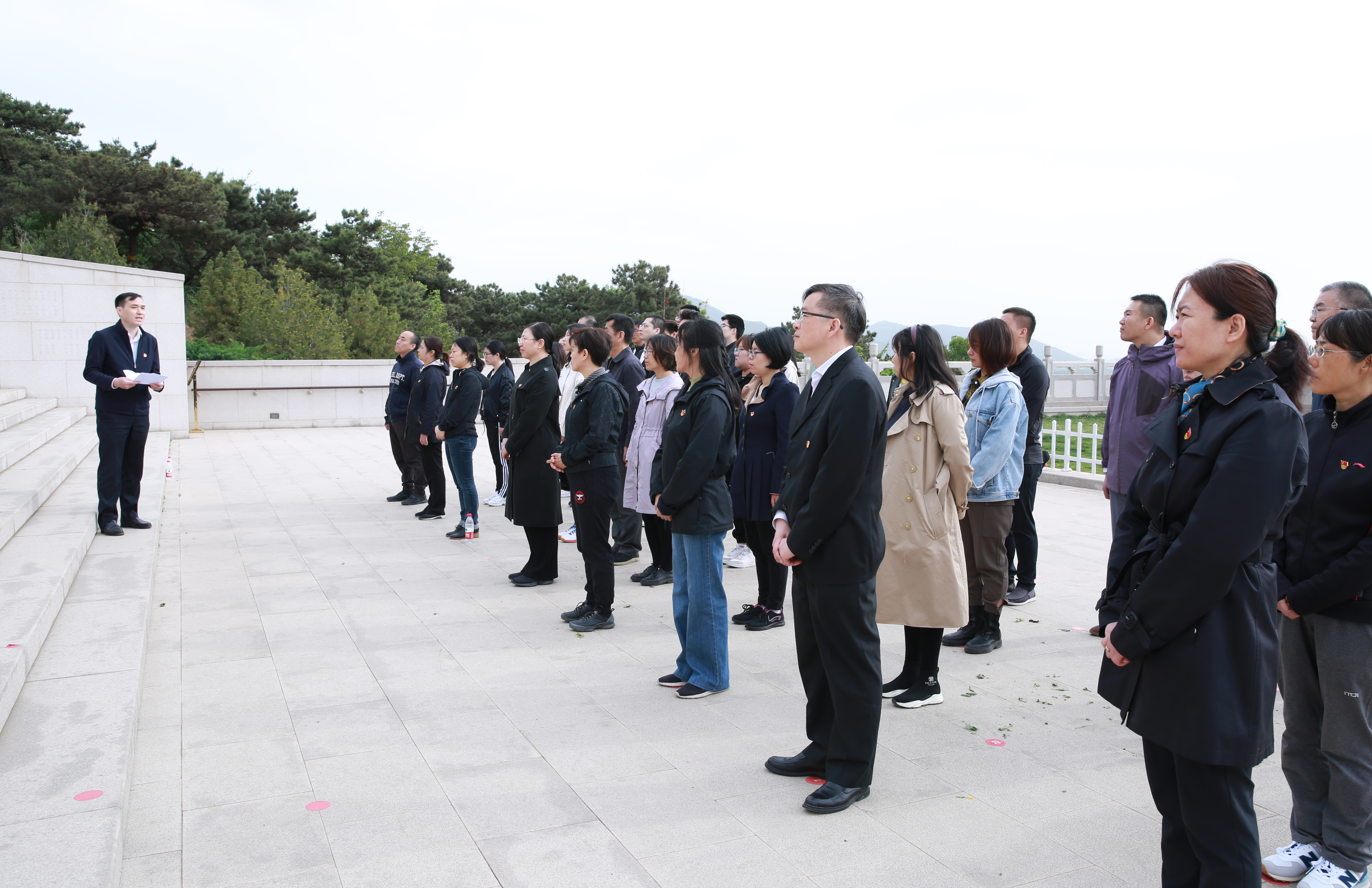 行業管理處黨支部書記陳征華介紹了本次聯合主題黨日的活動目的及意義。行業管理處黨支部組織委員王磊介紹了這里承載的歷史。北京西山無名英雄紀念廣場是為了紀念20世紀50年代犧牲于臺灣的我黨隱蔽戰線的無名英雄,一層廣場前的巨幅景觀墻中有毛澤東主席題詩:“驚濤拍孤島,碧波映天曉。虎穴藏忠魂,曙光迎來早。”