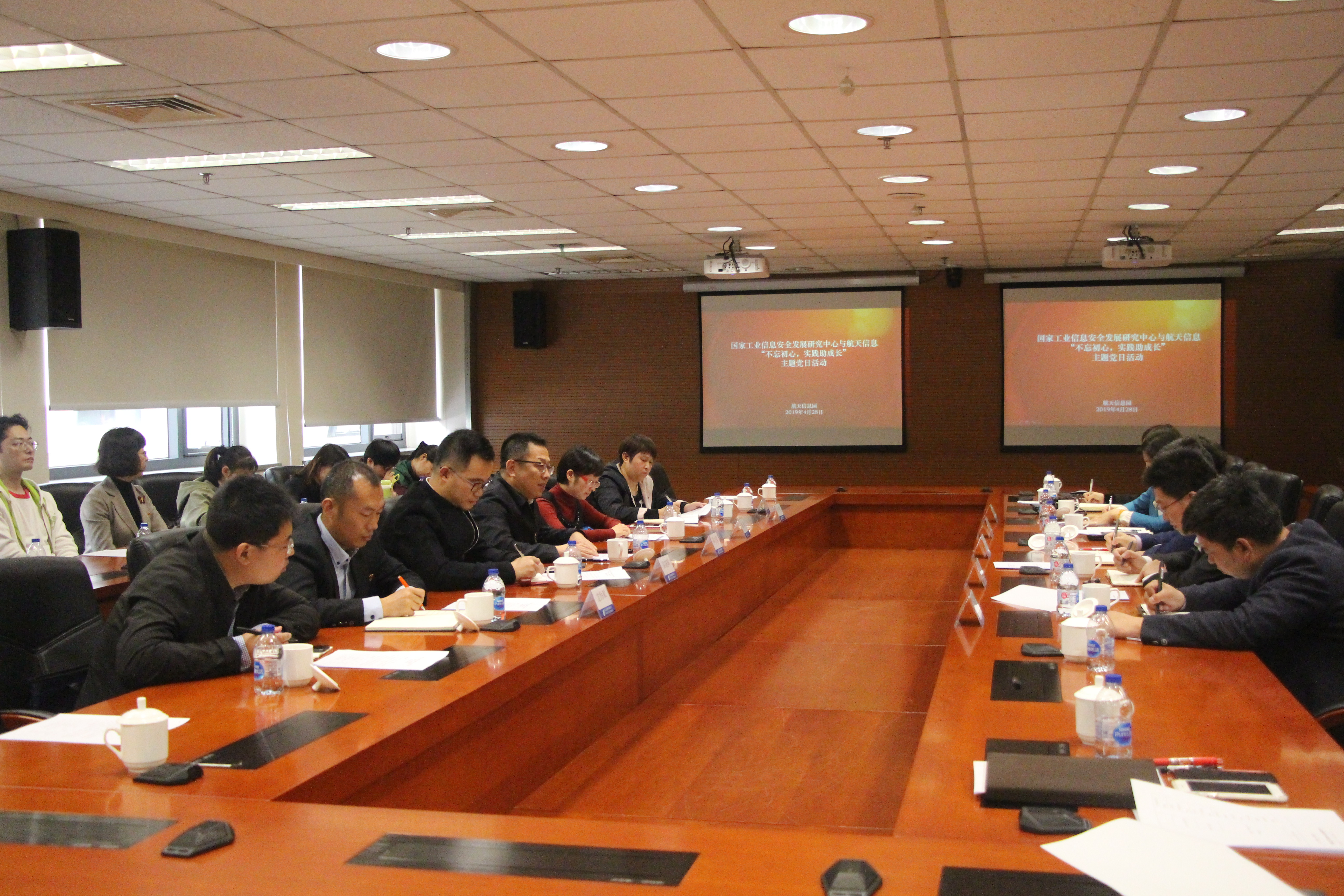 2019年4月28日,由國家工業信息安全發展研究中心紀委書記郝志強帶隊,中心第一黨支部、第十九黨支部聯合前往航天信息股份有限公司(以下簡稱“航天信息”)開展了“不忘初心,實踐助成長”的主題黨日活動。航天信息副總經理周振浩帶領集團黨群工作部、保密辦公室、技術質量部、技術研究院以及下屬華迪公司相關黨員干部同志進行了對接,并聯合開展主題黨日活動。