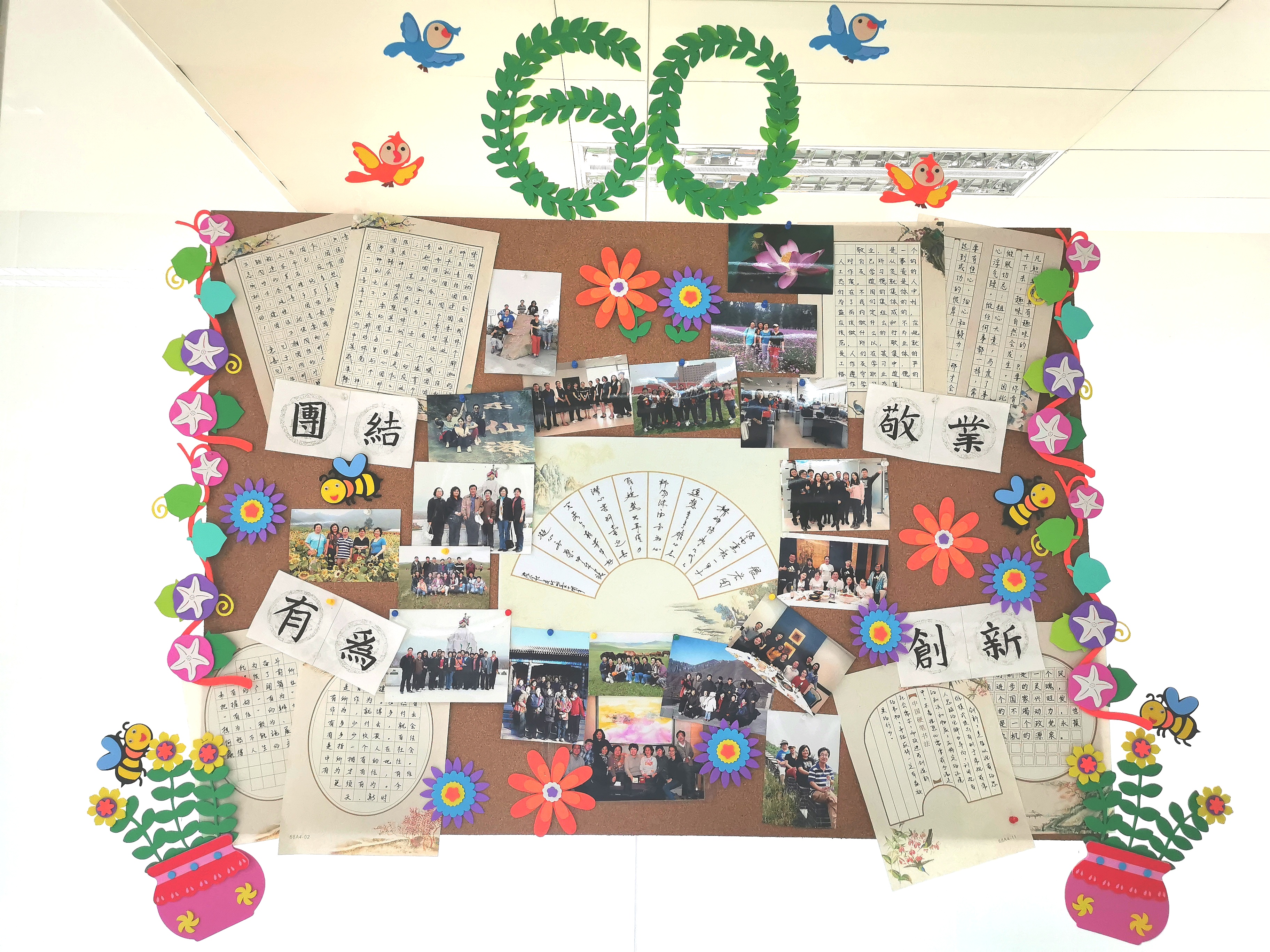 祝會超同志為老同志們介紹了財務處為慶祝中心成立六十周年專門制作的宣傳展板,詮釋了中心文化,并朗讀了自己創作的“展宏圖”詩作,大家予以高度贊揚。座談會上還進行了隆重的簽到儀式,每位同志在簽到簿上莊嚴簽上自己的名字,體會中心薪火相傳的深刻寓意。