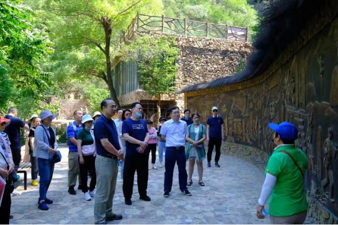 浮雕墻下,黨員們了解炭廠村村民支持抗戰,積極參軍,為八路軍昌宛支隊生產軍火、送糧,送情報,打擊侵略者,服務“昌宛縣佐”公署開展工作的紅色歷史。現場聲光效果的情景再現,讓全體黨員感受到了當時軍民一心,同仇敵愾的革命氣勢,以及革命先烈追求真理,信念堅定,為建設社會主義新中國而不懈奮斗的精神。