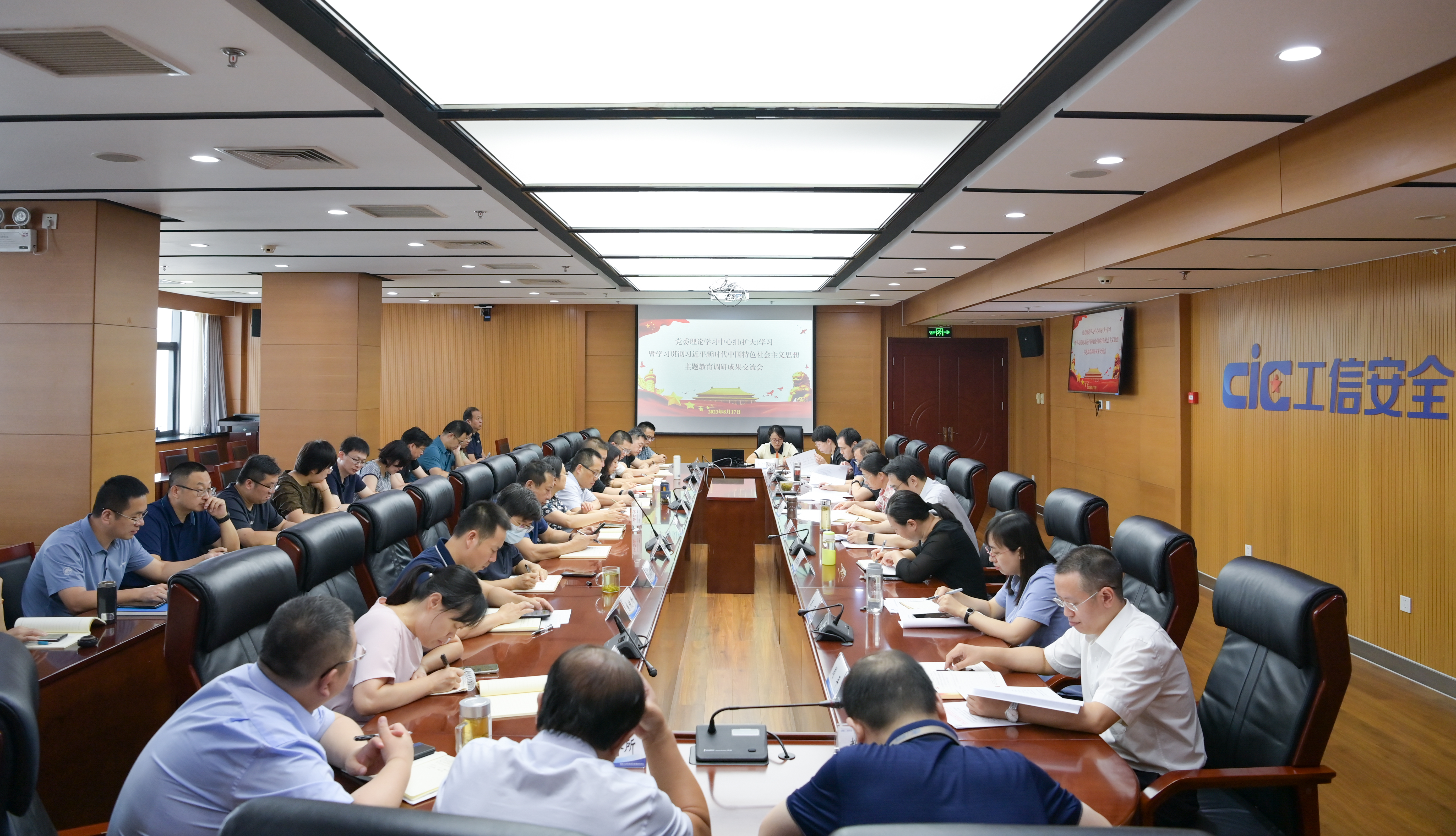 8月17日,國家工業信息安全發展研究中心黨委召開理論學習中心組(擴大)學習會暨學習貫徹習近平新時代中國特色社會主義思想主題教育調研成果交流會。會議由中心黨委書記、副主任蔣艷主持,中心領導班子成員、各部門主要負責同志、各黨支部書記、在京所屬企業主要負責同志40余人參加會議。