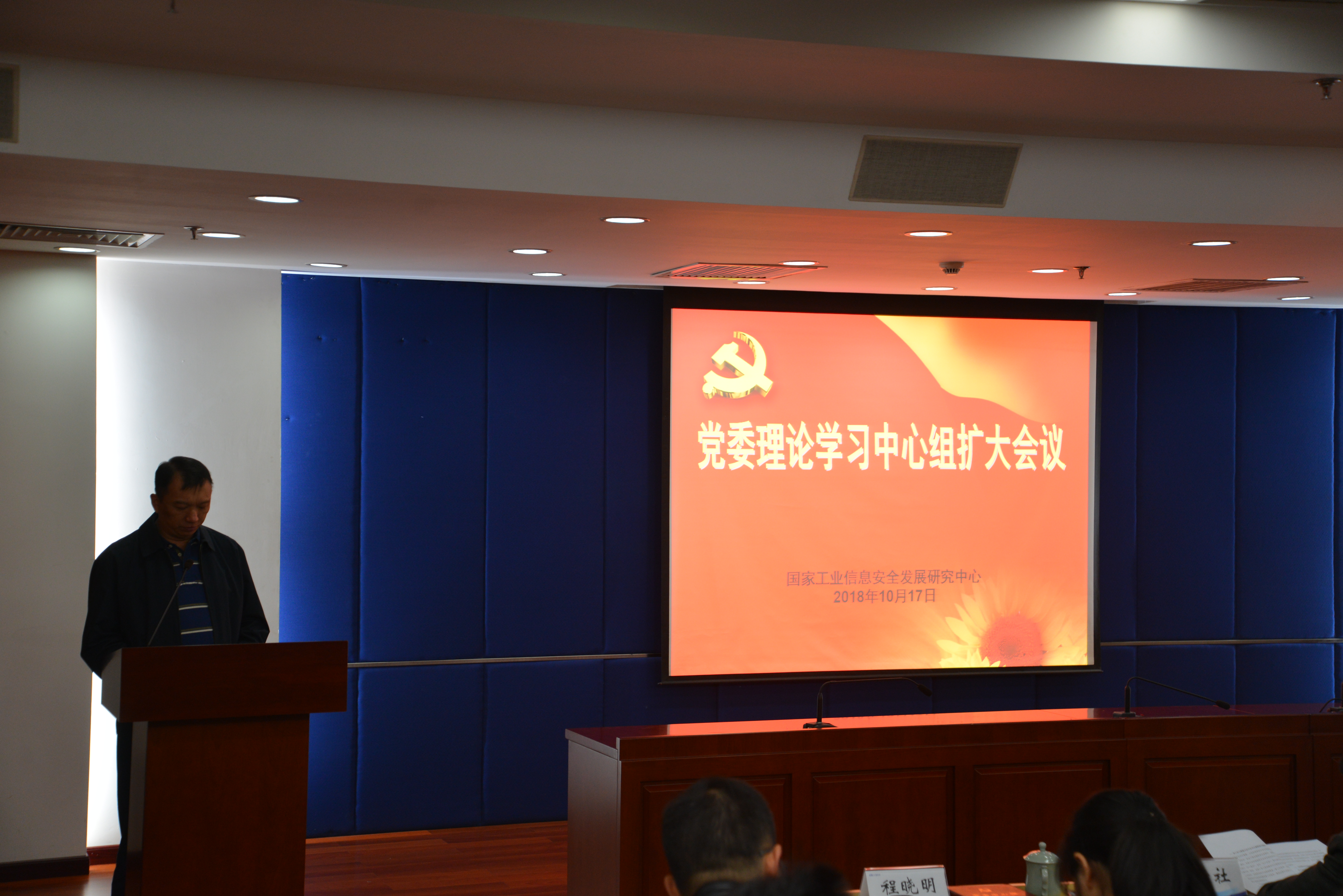 2018年10月17日,中心黨委在十六層報告廳召開理論中心組擴大學習會議,中心黨政領導班子成員、全體中層及以上領導干部、各黨支部委員60余人參加學習,會議由黨委書記、中心副主任程曉明同志主持。