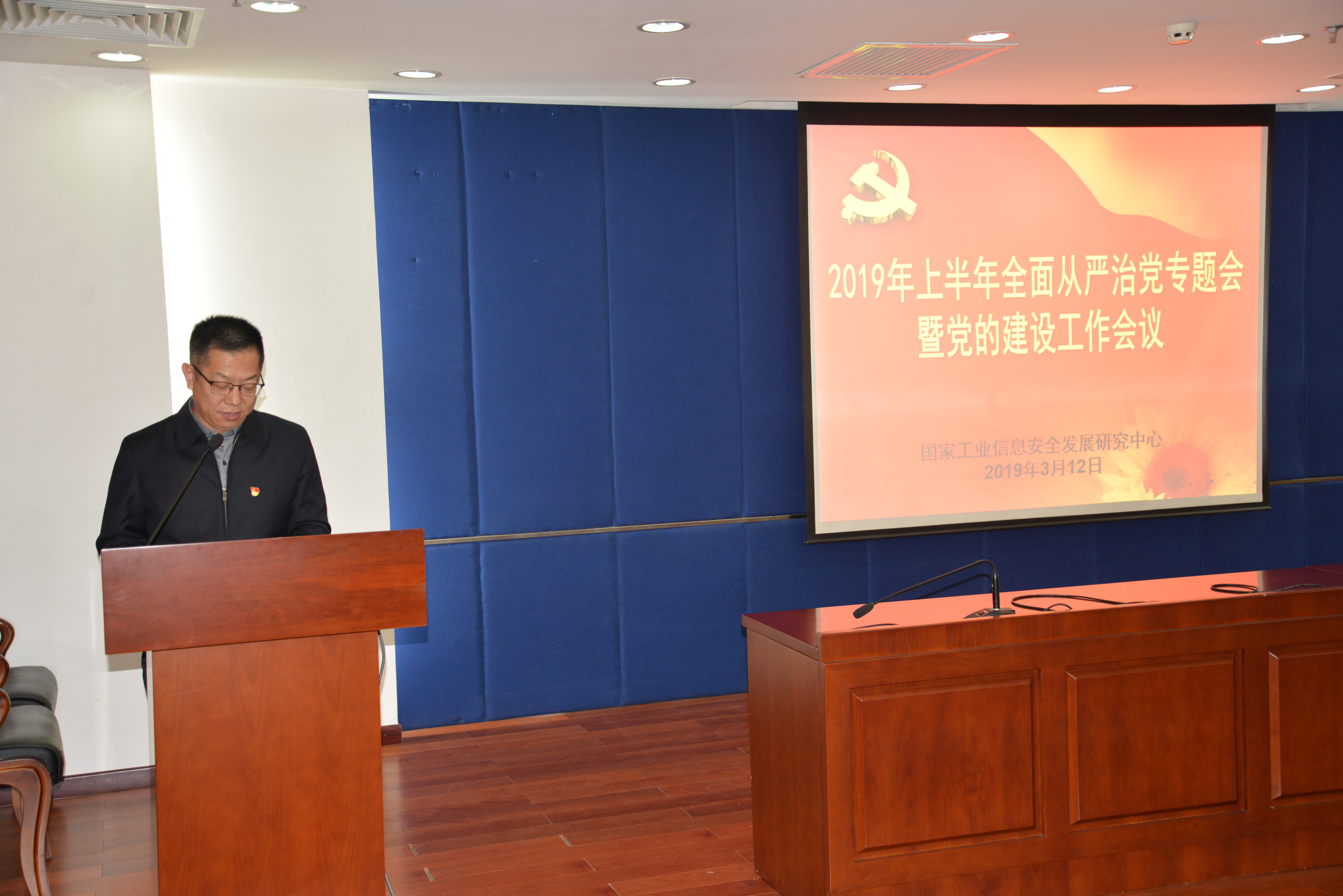 程曉明同志代表中心黨委部署了2019年中心黨建和全面從嚴治黨重點工作,并對六個方面的工作進行了著重強調:一是要堅決把學習貫徹習近平新時代中國特色社會主義思想和黨的十九大精神引向深入,堅決貫徹落實習近平總書記關于制造強國和網絡強國的重要論述及各項決策部署;二是要持續加強黨的政治建設,著力涵養良好的政治生態;三是認真開展好集中整治形式主義、官僚主義具體工作,務求取得實效;四是積極謀劃開展“不忘初心、牢記使命”主題教育,切實發揮黨支部的戰斗堡壘作用和黨員的先鋒模范作用;五是要持續抓好巡視、巡察發現問題整改及問題線索處置工作,持之以恒推動長效機制建設;六是要堅決貫徹落實好中央八項規定及其細則精神,切實增強紀律意識和規矩意識。程曉明同志還傳達了中央《關于解決形式主義突出問題為基層減負的通知》,要求各黨支部進一步深刻領會中央和部黨組相關會議文件精神,嚴肅認真開好2018年度黨支部組織生活會,切實抓好形式主義、官僚主義集中整改工作。