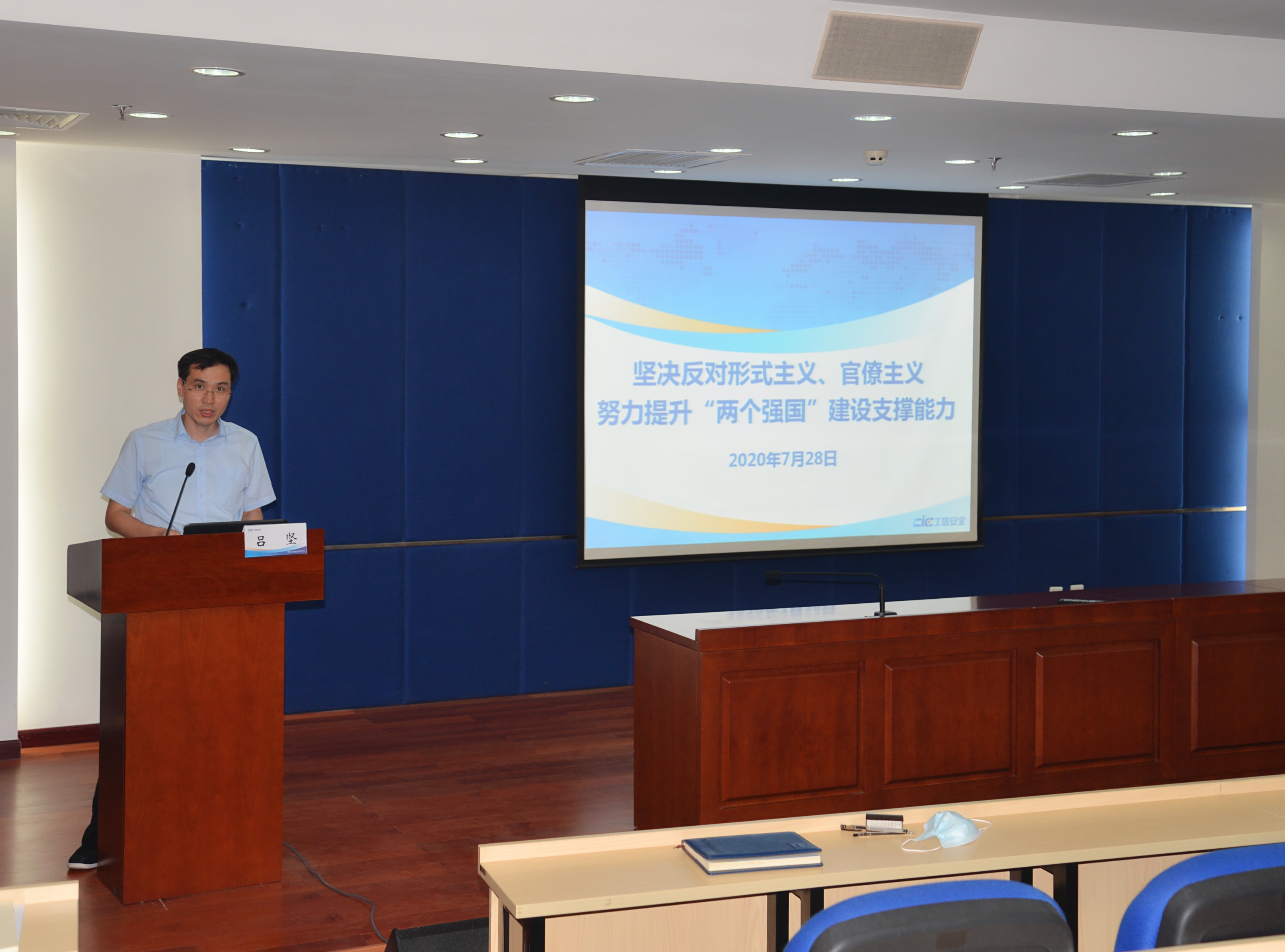 7月28日,中心黨委副書記呂堅同志在16層報告廳為分管部門講授“堅決反對形式主義官僚主義 努力提升‘兩個強國’建設支撐能力”主題黨課。各分管部門負責人、黨支部委員、普通黨員及群眾參加此次黨課。