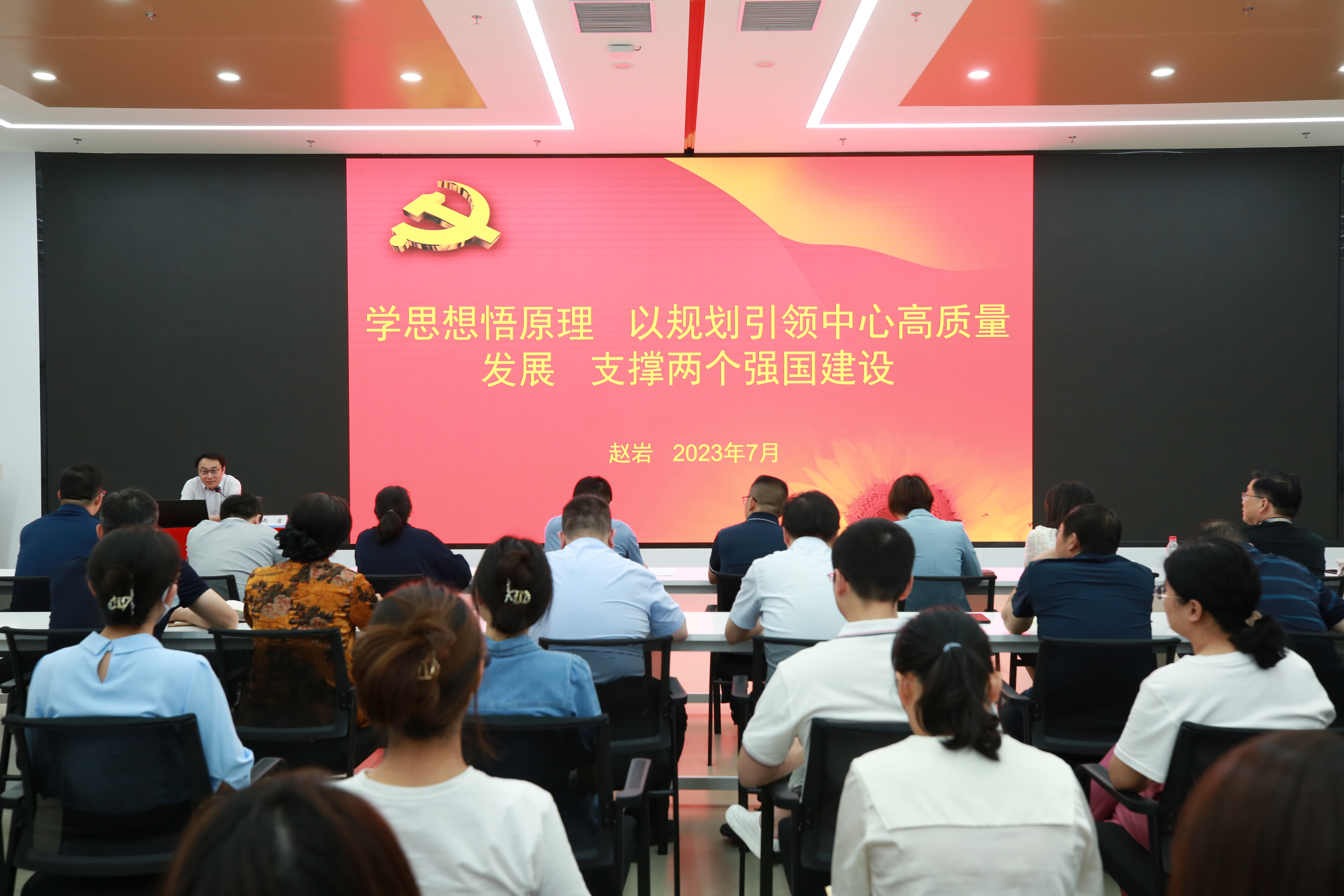 趙巖同志在黨課中與中心黨員干部、青年同志分享了學習貫徹習近平新時代中國特色社會主義思想的收獲,以及研讀《習近平著作選讀》的體會,也結合中心業務發展“十四五”規劃實施情況與同志們交流了更好推進落實的路徑與方法。