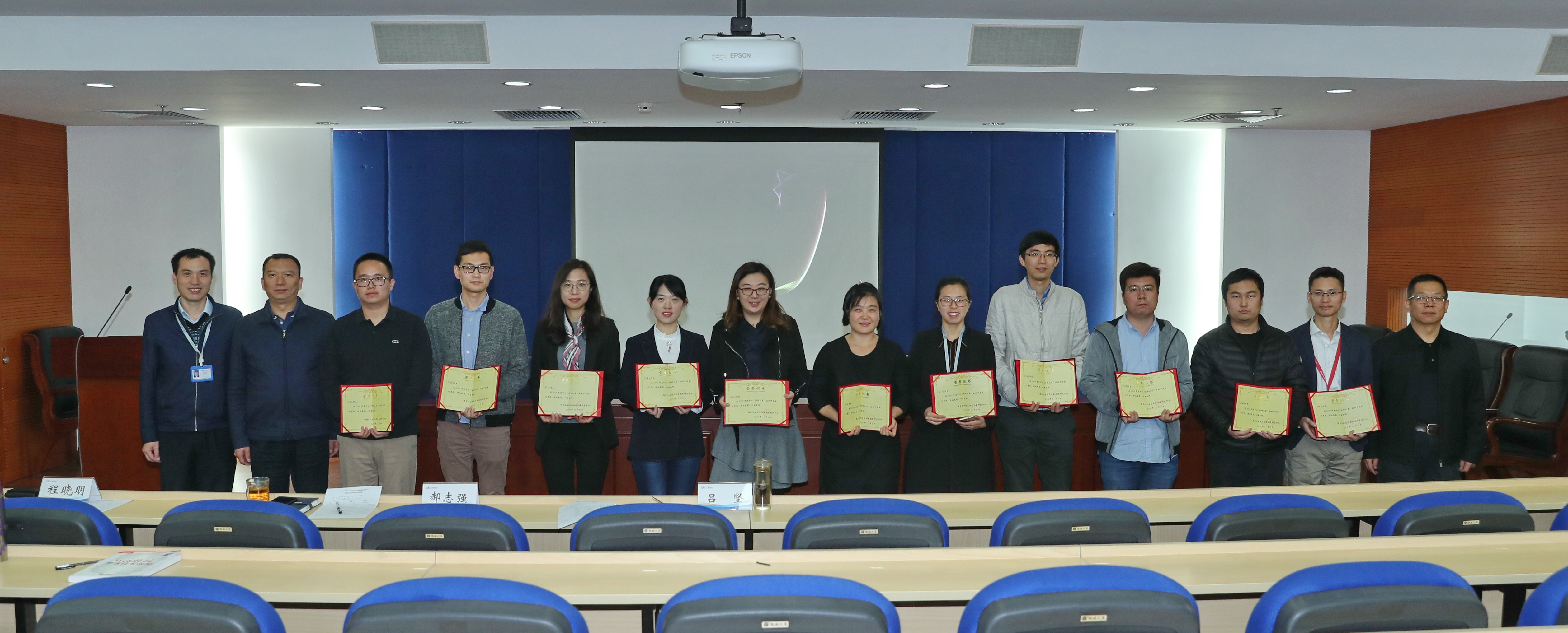 最終經過激烈地角逐,檢查評估所的張曉菲以樸實的演說、深厚的技術實力征服了在場觀眾,獲得2019年度“科研之星”一等獎,保障技術所楊帥鋒和信息化所邱君降兩位同志榮獲二等獎,李端、賈若倫、張茜等8位青年同志分獲三等獎及優秀獎。程曉明、郝志強、呂堅為獲獎人員頒發了榮譽證書并與獲獎人員合照。