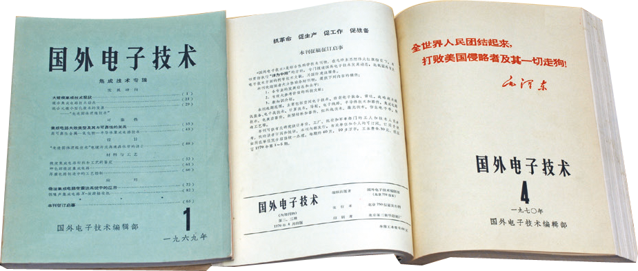 20世紀50年代末,隨著國民經濟發展第一個五年計劃的全面完成,我國工業生產能力和技術水平取得巨大進步,新中國波瀾壯闊的工業化進程正式開啟。然而,由于起步晚、基礎薄、力量弱,電子工業行業仍然面臨著艱巨的發展任務,急需廣泛學習借鑒發達國家的電子工業領域的先進技術和發展經驗。