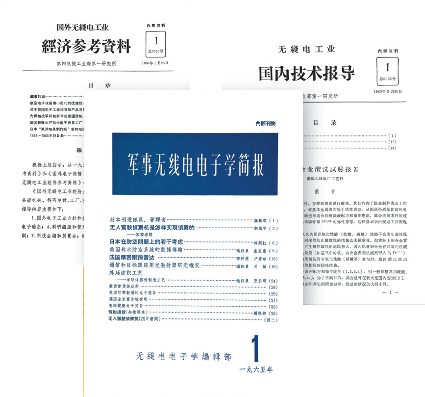 1959年起,陸續出版《無線電技術》《無線電技術譯叢》《電子工業快報》《情報通訊工作》等幾十種刊物,全面跟蹤匯總國際技術動態,為行業提供情報研究支撐。