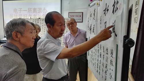 中心聘請了中國硬筆書法協(xié)會馬禎貴老師講解如何鑒賞書法作品;邀請了年近八旬資深書法愛好者黃史堅介紹了其書法作品的創(chuàng)作思路。活動中,十余位老年書法大學(xué)學(xué)員分別展示了自己書法作品,馬老師對作品逐一進行了點評。