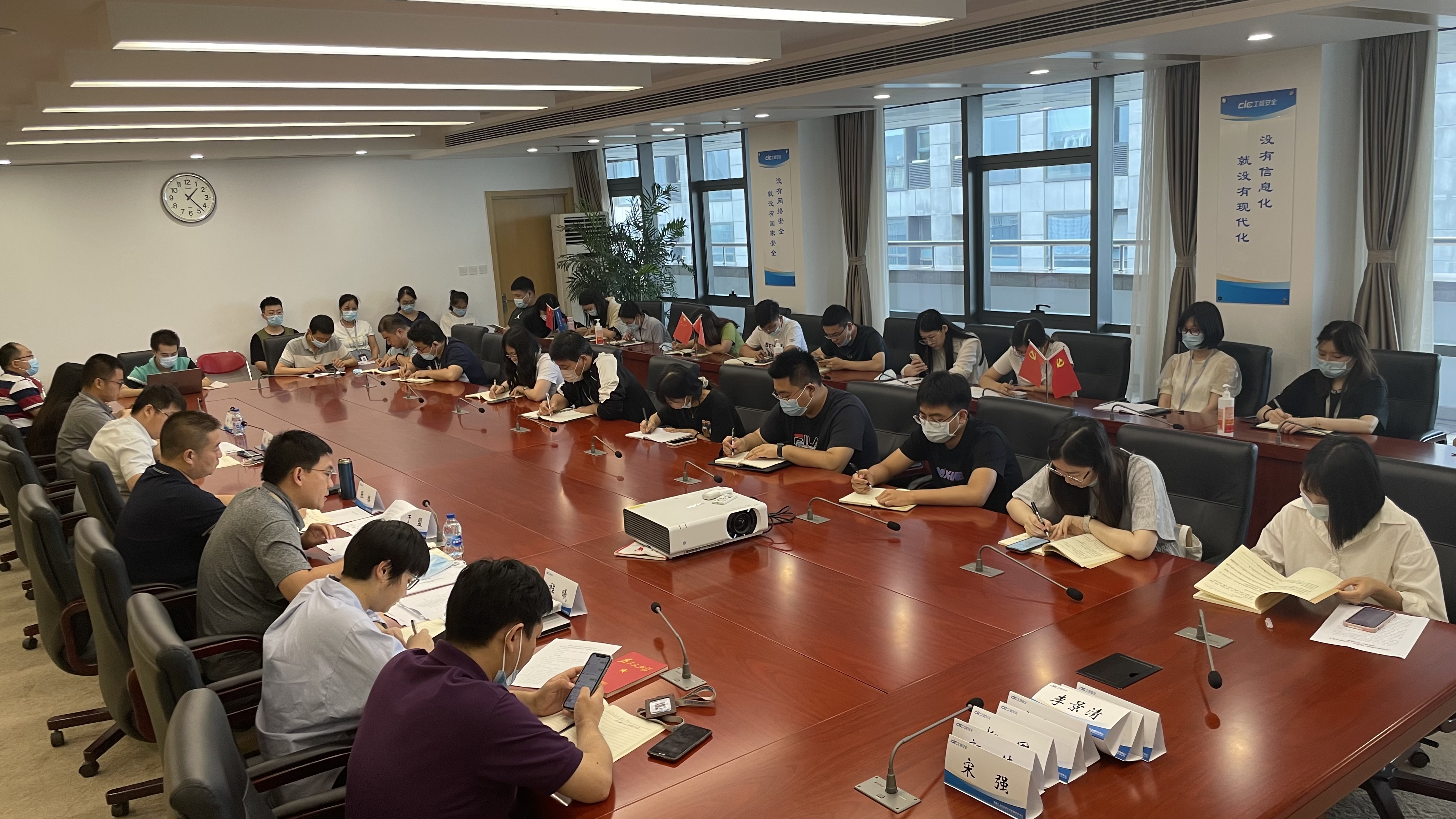現(xiàn)場學(xué)習(xí)環(huán)節(jié)中,全體參會同志集體學(xué)習(xí)了習(xí)近平總書記在慶祝中國共產(chǎn)黨成立100周年大會上的重要講話以及《用好紅色資源,傳承好紅色基因,把紅色江山世世代代傳下去》重要文章,并對《論中國共產(chǎn)黨歷史》《毛澤東、鄧小平、江澤民、胡錦濤關(guān)于中國共產(chǎn)黨歷史論述摘編》《習(xí)近平新時代中國特色社會主義思想學(xué)習(xí)問答》《中國共產(chǎn)黨簡史》等4本學(xué)習(xí)材料進行了書籍引薦。隨后,支部書記張格以“學(xué)黨史踐行初心,深耕網(wǎng)絡(luò)安全陣地”為主題講授了專題黨課。主題黨課從“傳承偉大建黨精神,堅守網(wǎng)絡(luò)安全陣地”“度之往事,踐行初心,扎實推進支部黨建與業(yè)務(wù)工作”“驗之來事,超前謀劃,厚植國家級工業(yè)信息安全權(quán)威機構(gòu)實力”等三個方面展開,激勵全體同志砥礪前行。檢查評估所副所長孫軍則結(jié)合業(yè)務(wù)工作分享了團隊管理相關(guān)的內(nèi)容。支部組織委員程曦結(jié)合七一重要講話學(xué)習(xí)心得,向全體同志發(fā)出倡議,號召大家增強行動意識和服務(wù)意識,以青春智慧,貢獻網(wǎng)安力量。