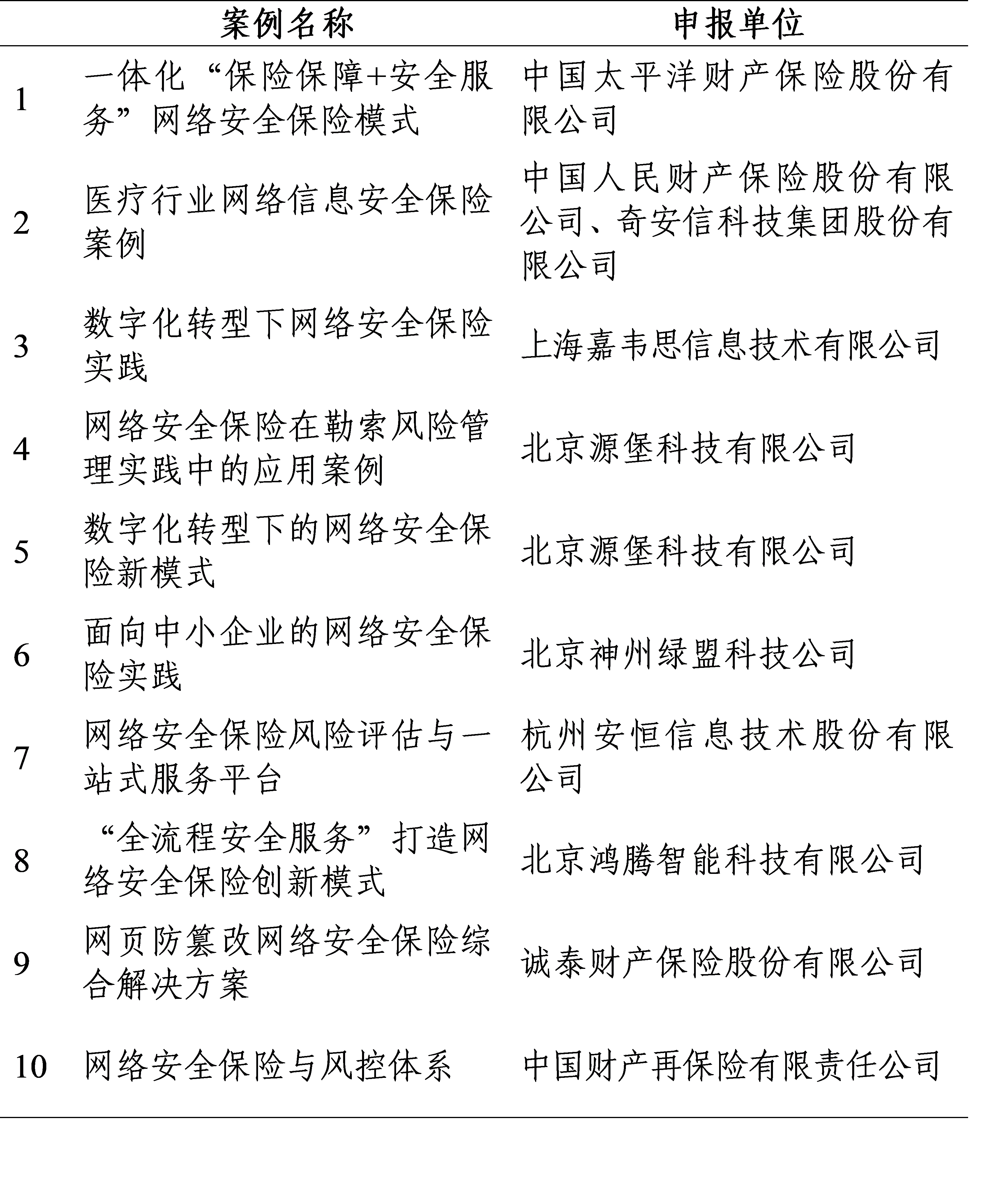 經過方案征集、形式審查、專家評審等環節,遴選出十項“2021年網絡安全保險新業態新模式典型案例”,現予以發布。