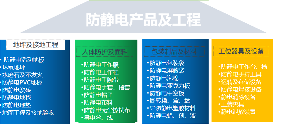 檢測對象涉及防靜電地坪工程、地板及材料;人體靜電防護用品;防靜電包裝材料;防靜電工作臺、工位器具設備;物流周轉箱、車用具;離子風機等靜電消散設備等。